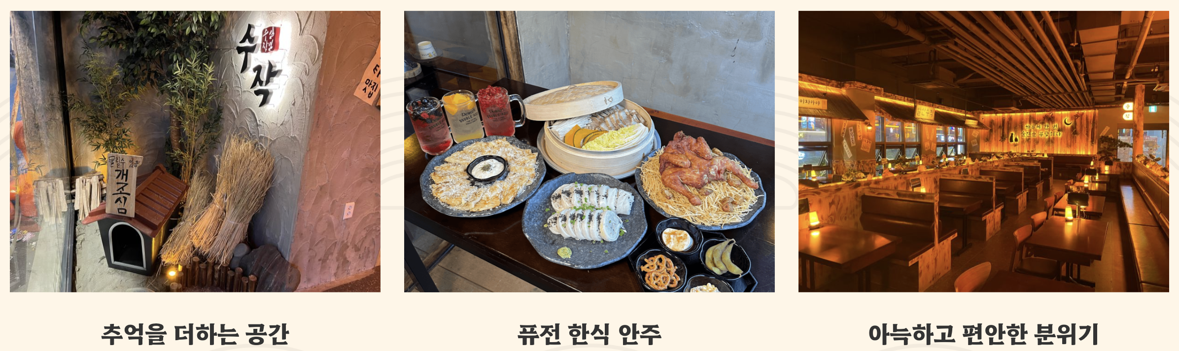 일일수작은 주점 브랜드 중 특이한 퓨전한식 안주와 함께 특색 있는 인테리어로 최근 핫한 장소로 주목받는 브랜드입니다.